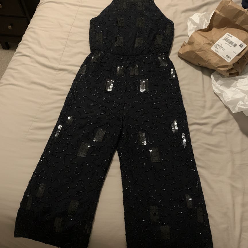 Black Sequined Cheery-Chic Partywear Jumpsuit