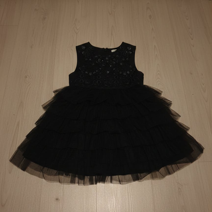 Exquisite black party dress with intricate embroidery details with Ruffles cascade down the skirt, infusing the dress with a playful and dynamic flair. The fabric drapes beautifully and allows for easy movement, making it suitable for hours of celebration.