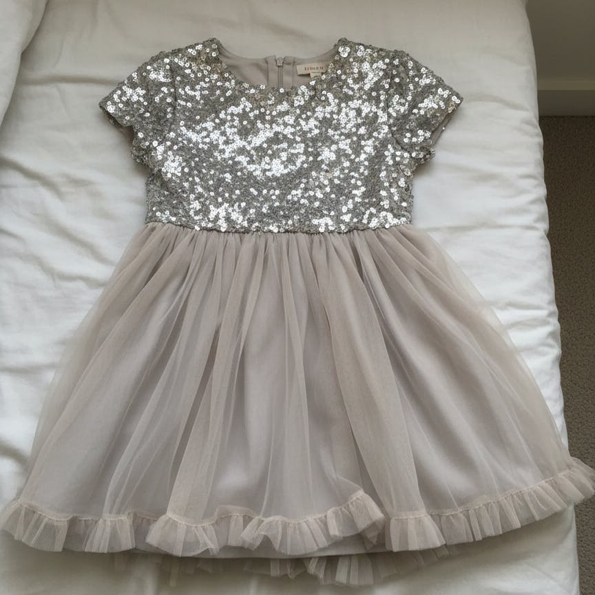 Lift your spirits with this elegant tulle sequins dress. The soft lining makes it rash-proof. The elegant boat neckline comes with pipping and soft sequins will add stars to their day.