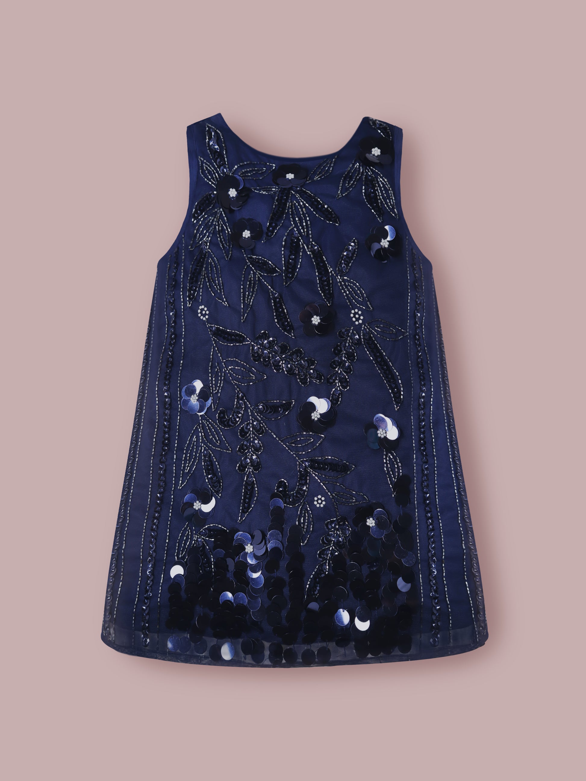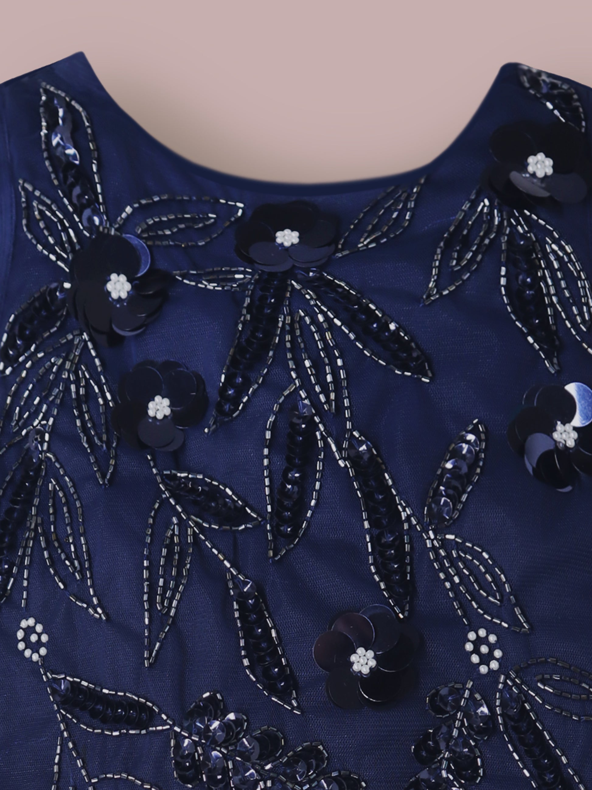 Girls Navy Blue Sequin Appliqué Dress – Sleeveless Party Wear